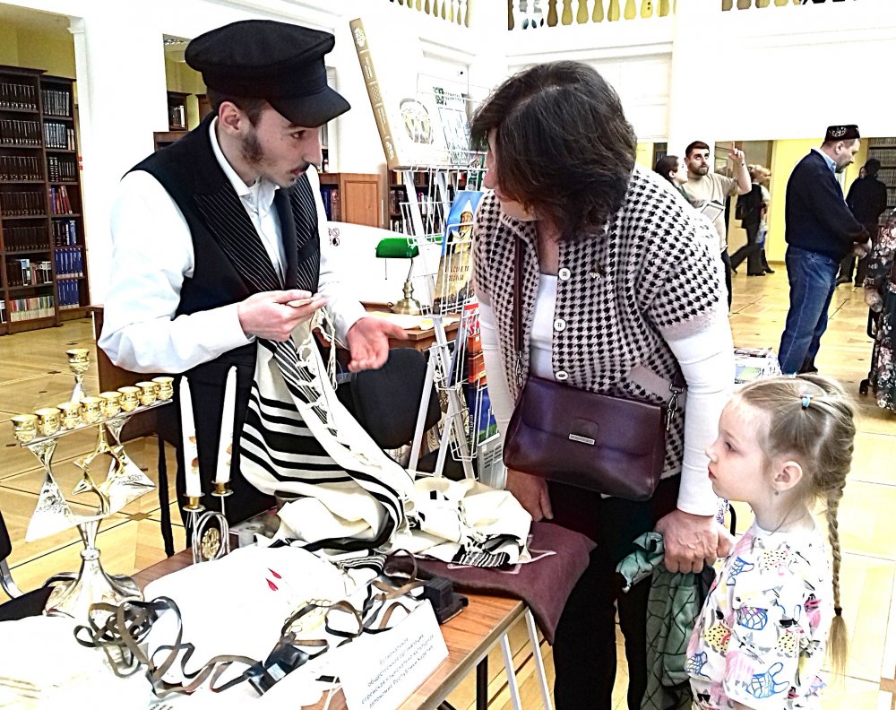 В рамках программы «Библионочь 2026» в Центральном зале Национальной библиотеки Республики Карелия была развернута «Ярмарка народов», на которой можно было познакомиться с традициями народов, населяющих Карелию: вепсов, карелов, татар, марийцев, узбеков, армян, белорусов, поляков, евреев, грузин, казаков, молдаван… В ротонде в течение вечера звучала музыка в исполнении учащихся и преподавателей Шуйской детской музыкальной школы, Музыкальной школы им. Г.Н. Синисало, выступали детские ансамбли национальных обществ. Еврейская община была представлена выставкой литературы, издаваемой общиной, некоторой атрибутикой, сопровождающей жизнь евреев на протяжении веков. Дмитрий Цвибель и молодой член общины, учащийся петербургской ешивы Илья Иванов, отвечали на вопросы заинтересованных посетителей. Хочется надеяться, что добросердечная атмосфера, царившая в этот вечер, распространится и за стены этого храма Книги.